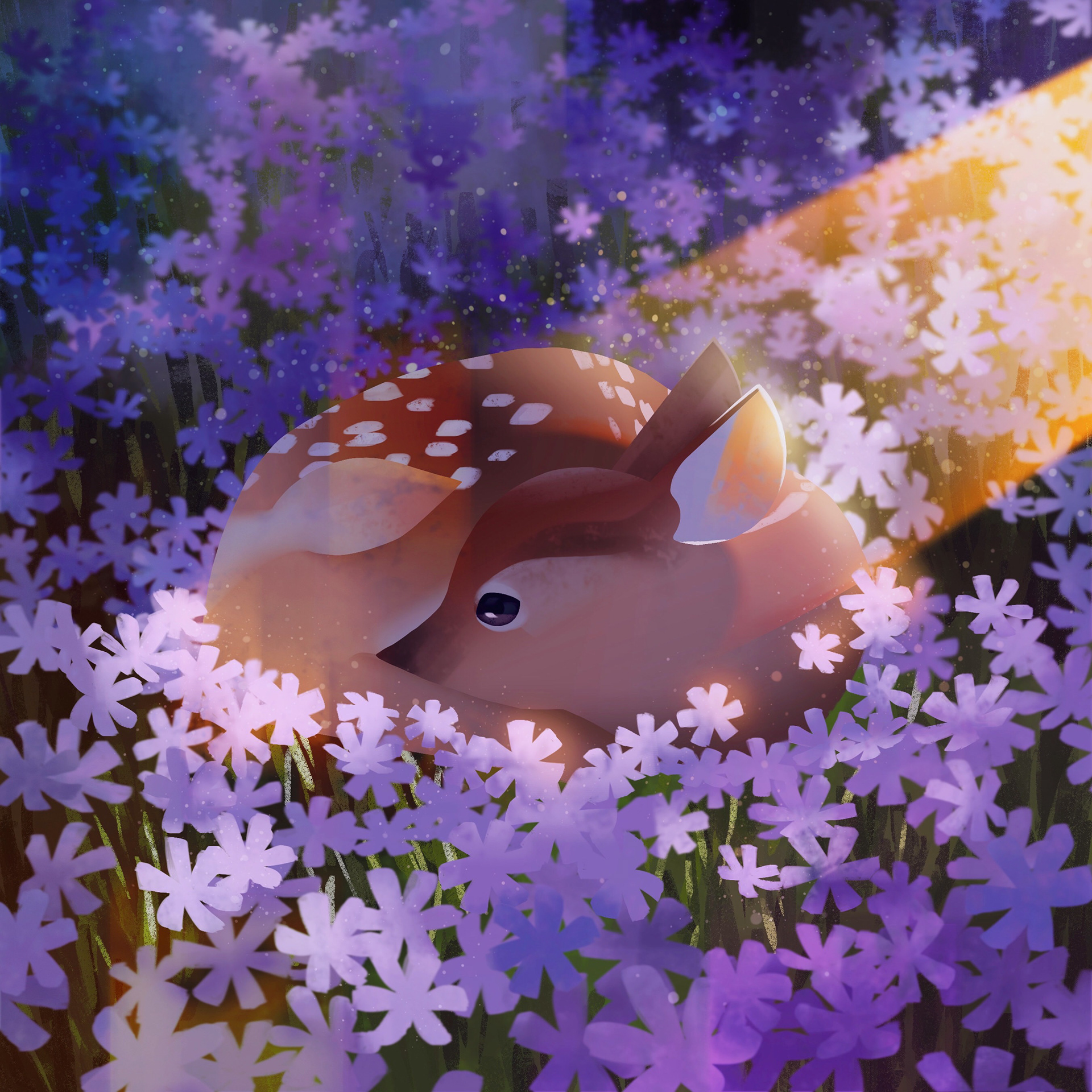 A DEER IN FLOWER FIELD